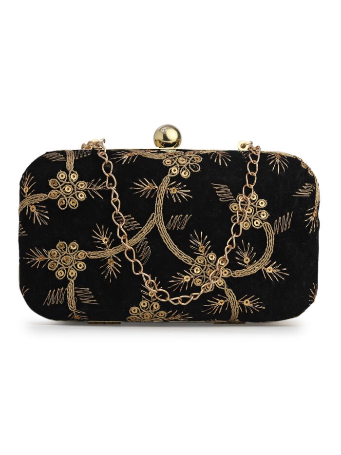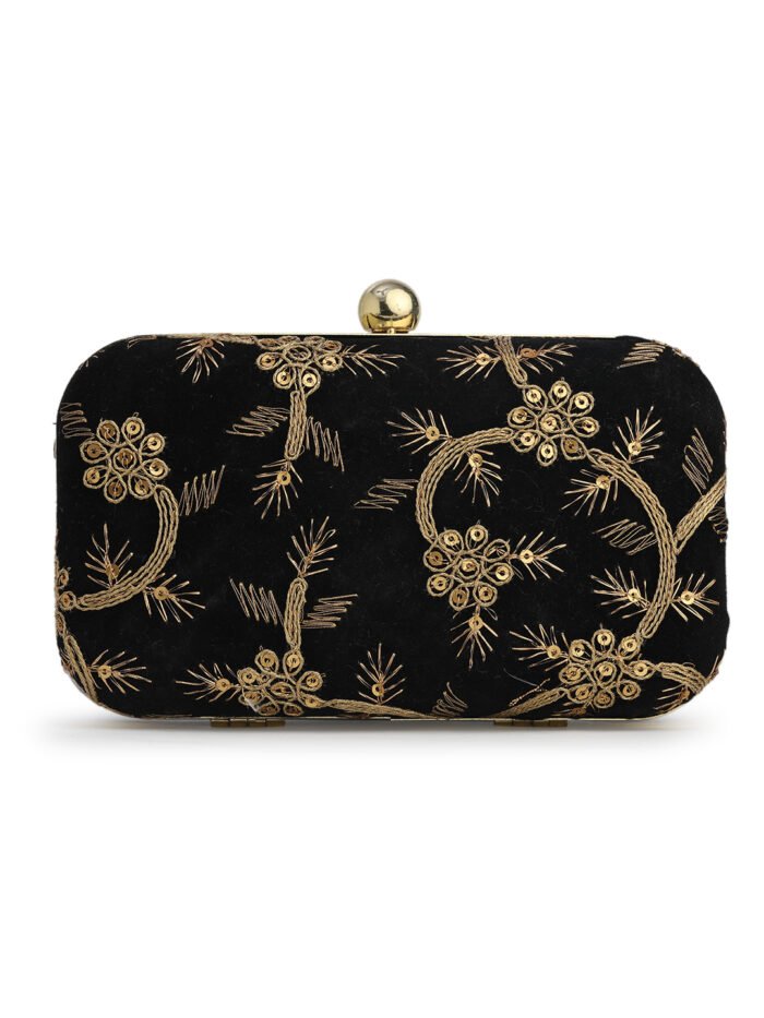Black & Gold Embroidered Box Clutches For Girls and womens