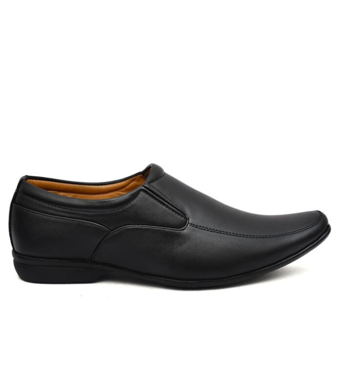 Men’s Faux Leather Formal Shoes, ? Color: Black, ? Material: Faux Leather, ? : 6, ? Closure Type: Slip-On, ? Heel Type: Flat, ? Type: Formal Shoes, ? Disclaimer: The color of actual product may vary slightly from the images provided due to photographic lighting conditions and difference in screen resolutions.