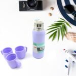 The Vacuum Flask Set is a quality stainless steel bottle with a portable car water bottle and three cups, making it the gift set for travel or outdoor adventures. With an approximate 500ml capacity, this bottle keeps drinks hot or cold for hours. Its durable construction and sleek design feature a convenient cover handle, ensuring easy transport and long-lasting use. Ideal for road trips, camping, or everyday hydration on the go.