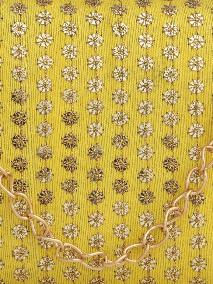 Yellow & Gold Embroidered Box clutches, Has gold chain shoulder strap, 1 main compartment with Kiss closure