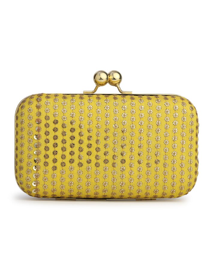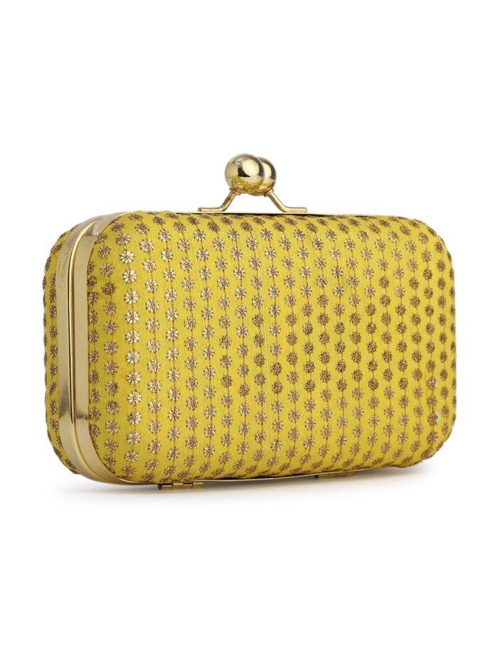 Yellow & Gold Embroidered Box Clutches For Girls and womens